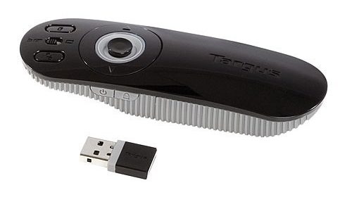 Targus AMP09AP-50 CS juga sangat praktis. Mini USB receiver yang terintegrasi memastikan remote selalu siap digunakan tanpa repot mencari dongle tambahan.