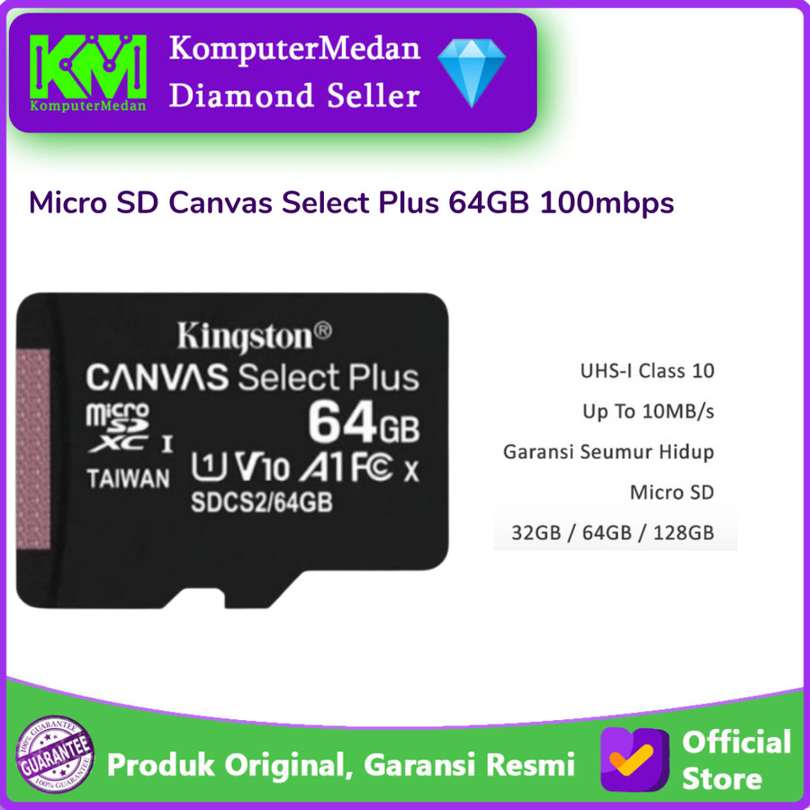 1. Kingston MicroSD Card Canvas Select Plus Class 10 MicroSDXC 64GB - Rp89.000,-