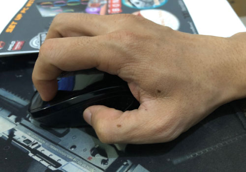 Kelemahan: Dengan meletakan telapak tangan seluruhnya di badan mouse, maka otomatis pergelangan tangan Anda akan menempel di meja. Pergelangan tangan akan terasa pegal jika digunakan dalam jangka waktu yang lama.