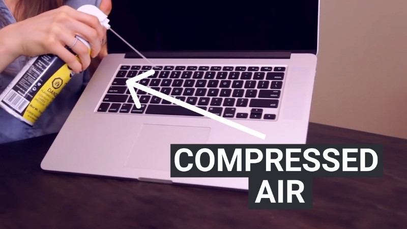Gambar 2: Cara Membersihkan Keyboard Laptop dengan Compressed Air Can (Sumber Business Insider)