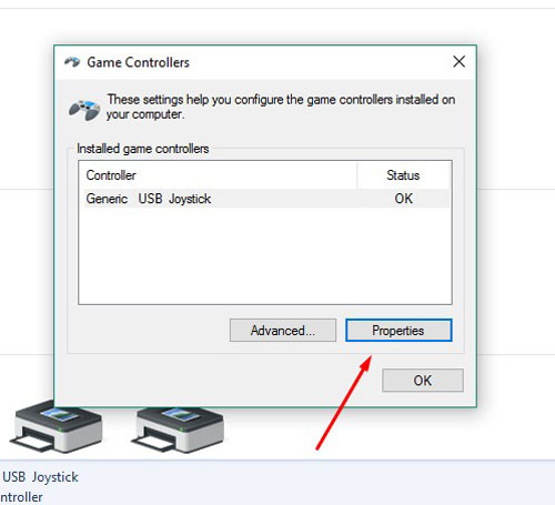4. Masuk ke menu Game Controllers, klik kiri "Properties"