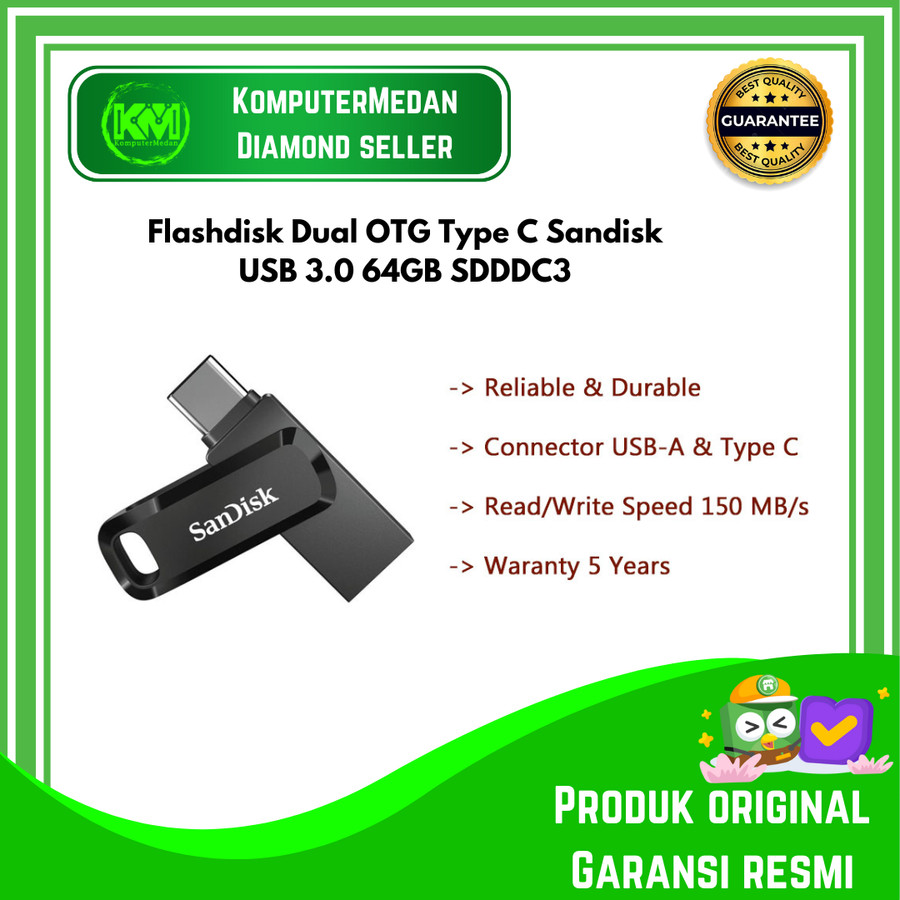 Last but not least, untuk rekomendasi flashdisk OTG terbaik, terdapat juga SanDisk Ultra Dual Drive Go 64GB memiliki desain dual interface USB Type-C dan Type-A, flashdisk ini memungkinkan transfer file yang mulus antara smartphone, tablet, Mac, dan komputer.