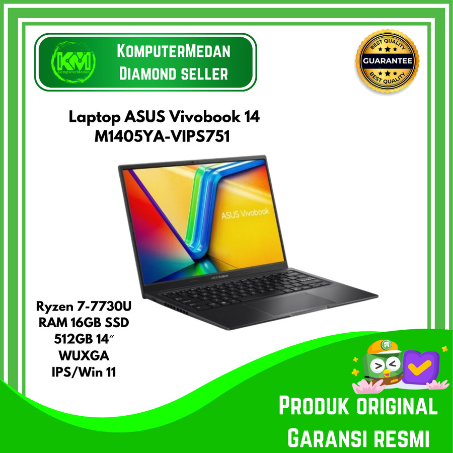 Laptop ASUS 10 jutaan selanjutnya adalah ASUS Vivobook 14 M1405YA, salah satu pilihan laptop yang solid dengan kinerja tangguh ditenagai prosesor AMD Ryzen™ 7 7730U dengan 8-core dan 16-thread.