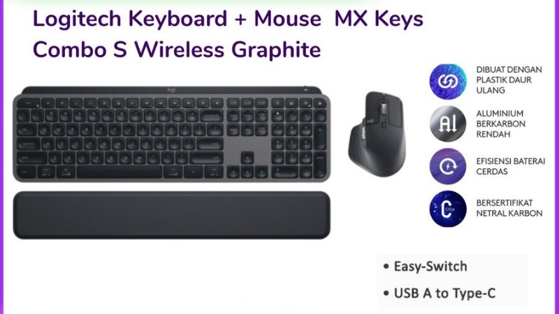 - Apabila Anda membutuhkan paket keyboard eksternal serta mouse, Anda bisa menggunakan Keyboard + Mouse Logitech MX Keys Combo S Wireless Graphite. Anda bisa mendapatkannya di link berikut ini: Tokopedia Komputer Medan.