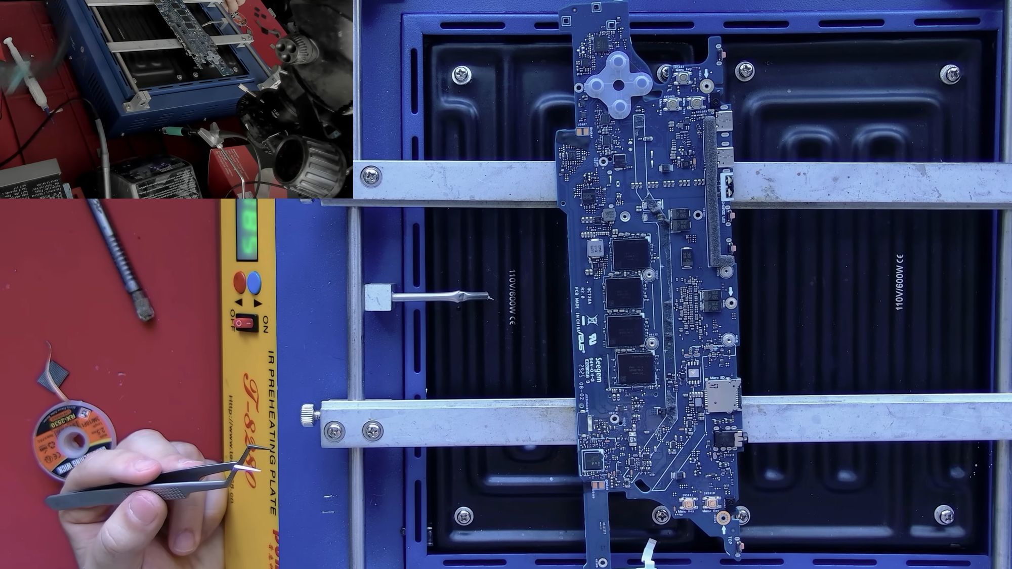 - Desoldering dan pemasangan ulang chip RAM yang baru.