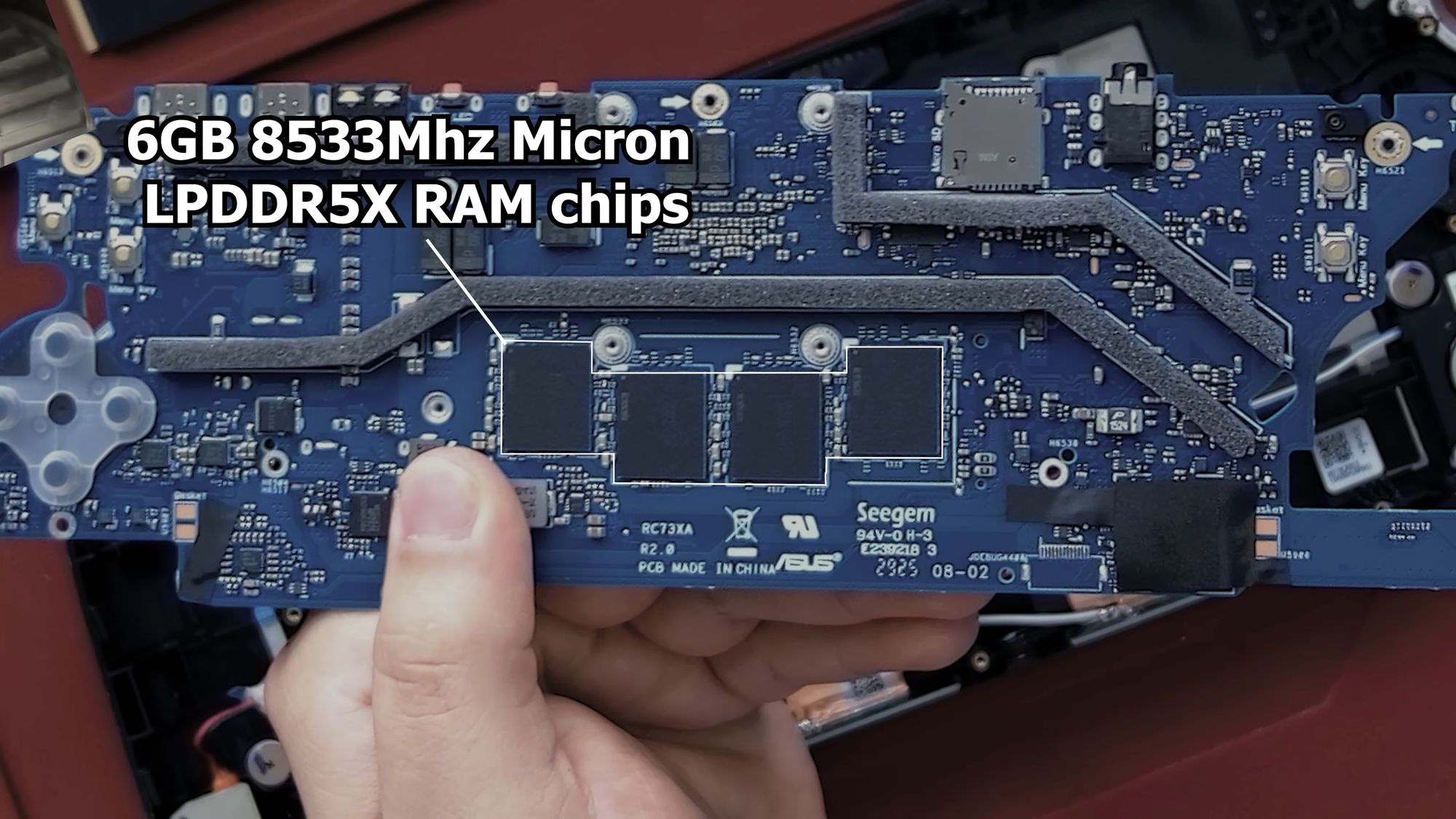 ROG Xbox Ally X secara default dilengkapi 24 GB LPDDR5X yang sudah tergolong tinggi untuk handheld gaming Windows. Namun modder mengganti setiap paket memori 6 GB yang disolder ke motherboard dengan modul RAM 16 GB ber-density tinggi, sehingga total kapasitas naik menjadi 64 GB.
