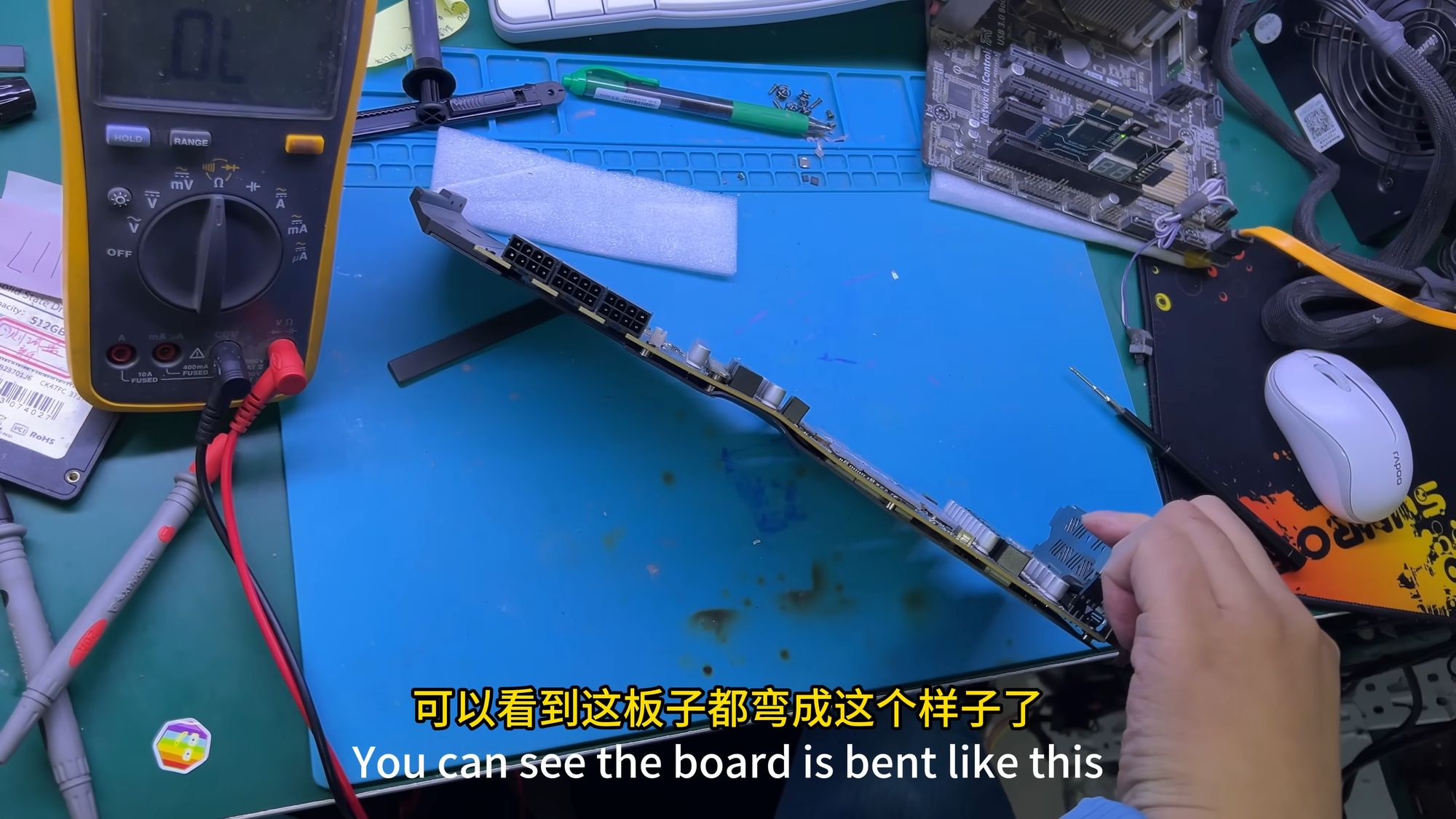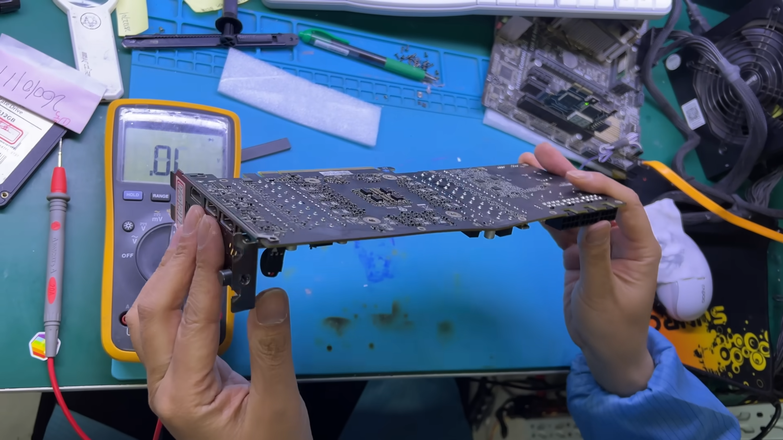 Saat percobaan untuk menyalakan PC dengan kartu yang sudah rusak itu, teknisi awalnya menolak memberikan daya karena khawatir kerusakan akan makin parah. Setelah membuka kartu dan melihat kehancurannya, sang teknisi sempat menyatakan bahwa kartu itu kemungkinan tidak bisa diperbaiki.