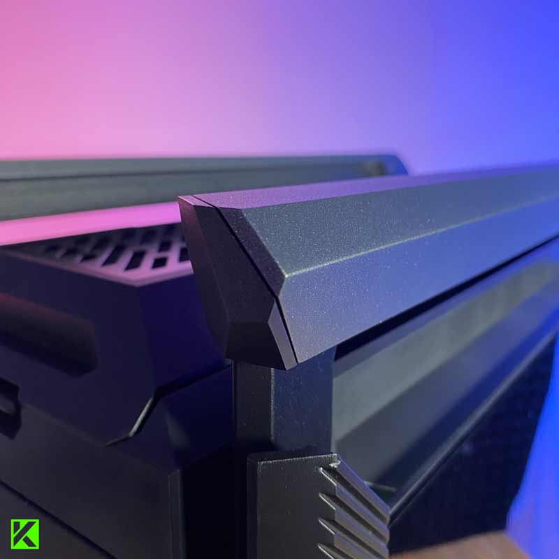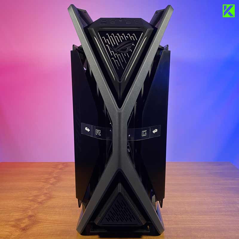 Untuk bagian rangka ROG Hyperion dibangun dari paduan aluminium kokoh yang ditempa menjadi X khas yang memanjang dari bagian tengah sasis hingga ke sekelilingnya.