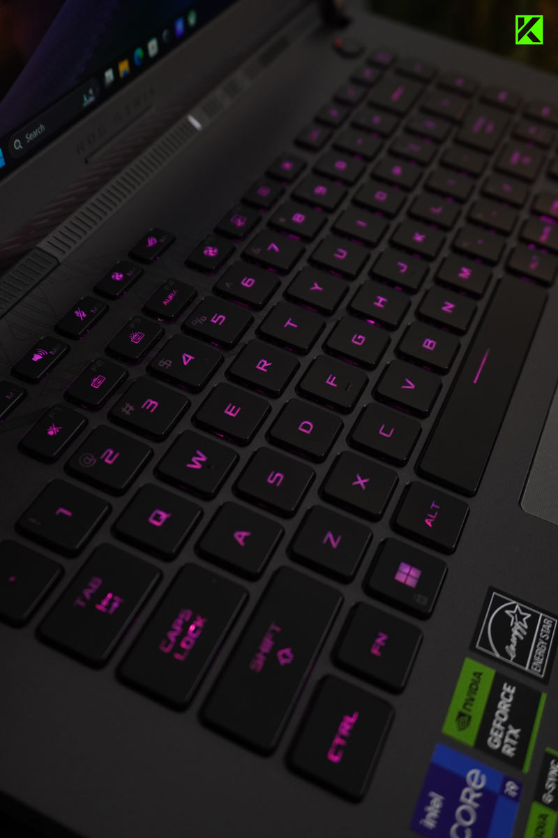 Pertama, mari kita bahas tentang keyboard yang dimilikinya. ROG Strix G16 (2024) ini hadir dengan keyboard RGB Backlit Per-Key yang memungkinkan pengguna untuk menyesuaikan pencahayaan sesuai dengan preferensi masing-masing.