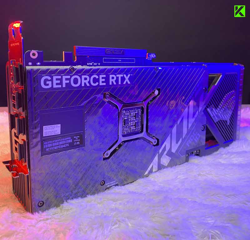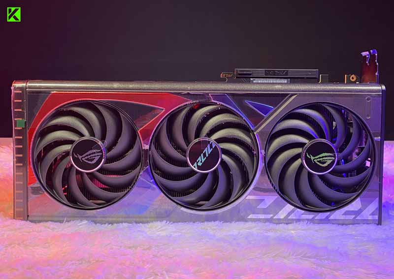 ASUS ROG Strix GeForce RTX 4070 Ti OC Edition ini juga sudah hadir dengan tiga kipas pendingin model Axia-Tech Fan yang ukurannya lebih besar dari generasi sebelumnya. Desain kartu grafis ini juga hadir dengan banyaknya rongga yang mendukung heatsink sistem pendingin agar bekerja dengan lebih baik.