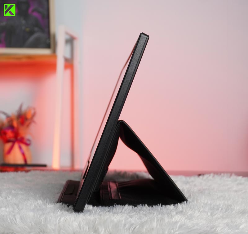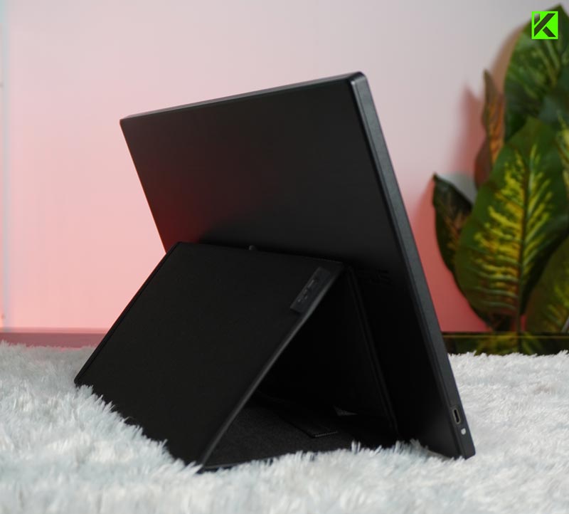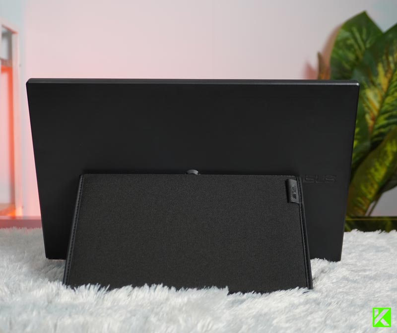 ASUS juga menyediakan sarung penyimpanan yang dapat dilipat dan digunakan sebagai penyangga, memberikan fleksibilitas dalam mendirikan monitor ini. Permukaan layarnya dilapisi anti-glare, mengurangi pantulan cahaya yang mengganggu, baik di ruangan bercahaya maupun di luar ruangan.