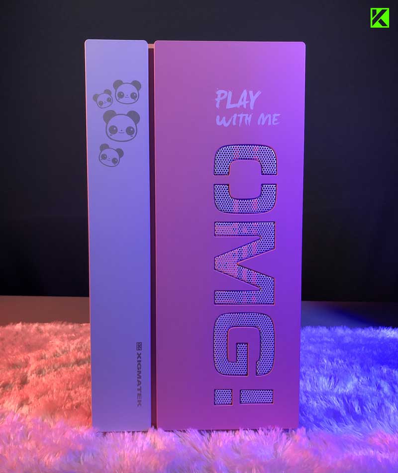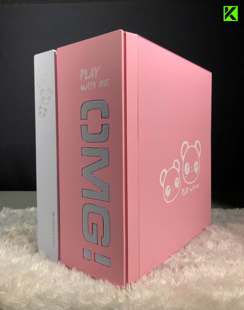 Dari luar, casing komputer ini terlihat lucu dan menggemaskan, apalagi ditambah dengan gambar panda bertuliskan "Play With Me!" yang sangat menggemaskan di bagian depan dan samping. Casing PC ini merupakan casing terlucu yang pernah kita review selama ini.