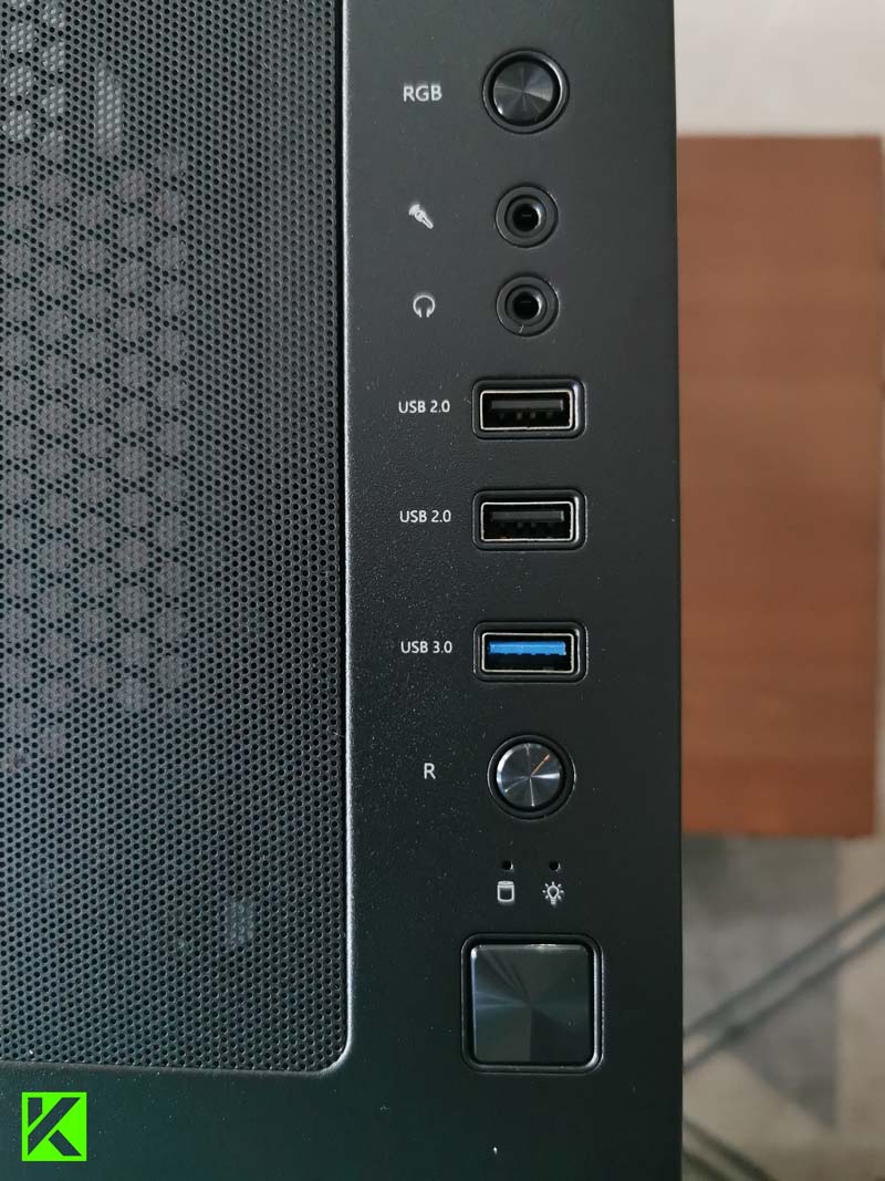 Pada jenis casing ini, telah tersedia 5 pilihan port I/O yang praktis yaitu mulai dari 1 buah USB 3.0, 2 buah port USB 2.0, dan juga 1 buah sambungan HD Audio serta tombol saklar RGB pada bagian atas untuk memberikan akses langsung bila diperlukan.