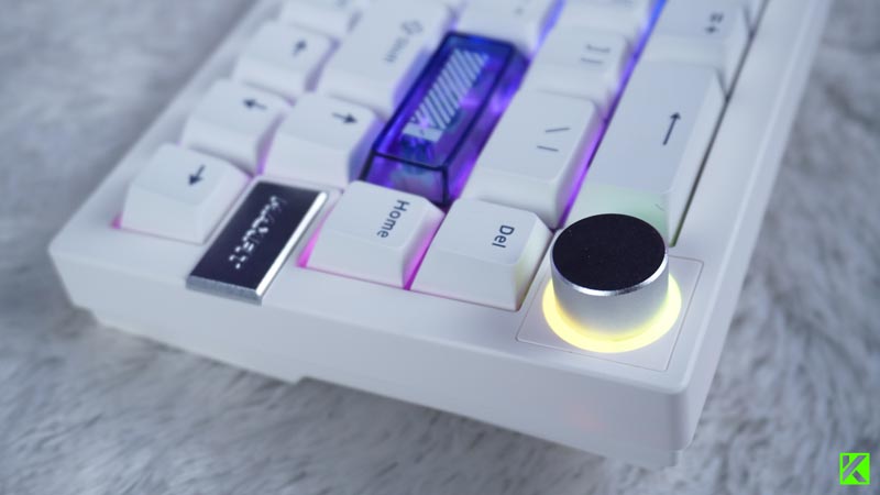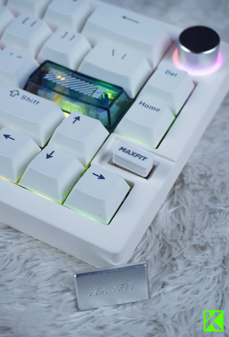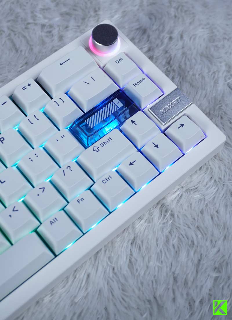 Fantech juga menyematkan multi-function rotary encoder di sisi kanan atas keyboard. Tombol putar ini bisa kamu gunakan untuk mengatur volume, mengganti mode RGB, atau fungsi lain yang bisa dikustomisasi lewat firmware QMK/VIA. Kehadiran fitur ini jelas menambah nilai plus, terutama untuk multitasker atau content creator.
