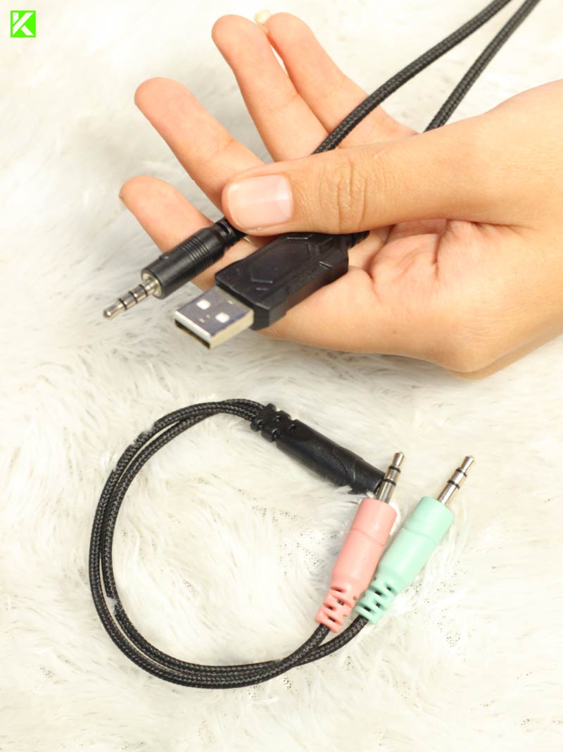 - Tipe konektor: Dual jack 3,5mm (4 pin) + USB (daya LED)