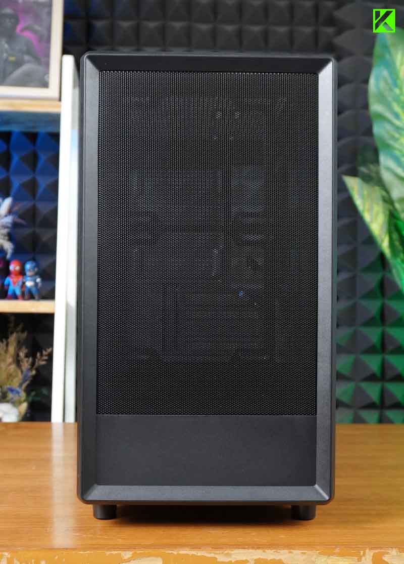 Dengan bahan front panel yang terbuat dari ABS dan metal mesh, casing ini tidak hanya memberikan tampilan modern, tetapi juga memastikan aliran udara yang optimal.