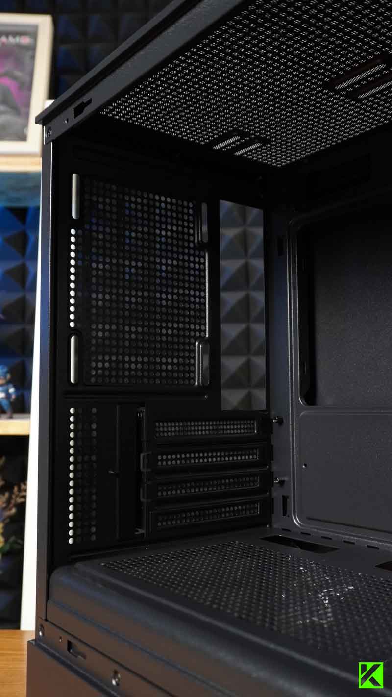 Casing INFINITY AXIS mendukung dua jenis form factor motherboard, yaitu Mini ITX dan Micro ATX. Poin ini memberikan nilai fleksibilitas bagi pengguna dalam memilih motherboard yang sesuai dengan kebutuhan.