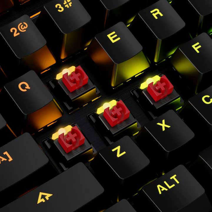 Salah satu daya tarik utama dari HyperX Alloy MKW100 ini adalah penggunaan switch TTC Red. Switch ini terkenal dengan kehalusannya, ideal untuk mengetik maupun bermain game.