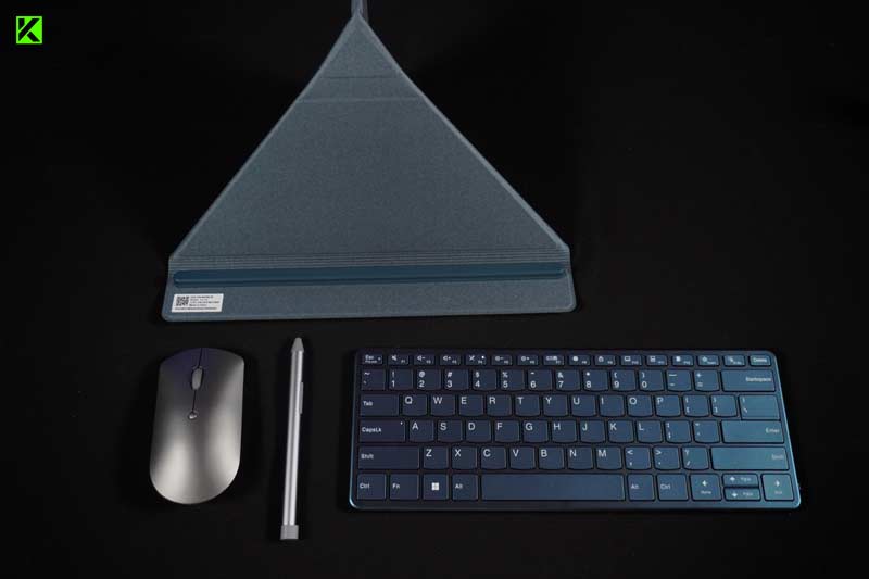 Selain itu, Lenovo memberikan opsi tambahan berupa keyboard fisik Bluetooth. Ketika keyboard ini ditempelkan pada layar bagian bawah, pengguna dapat memilih antara dua konfigurasi.