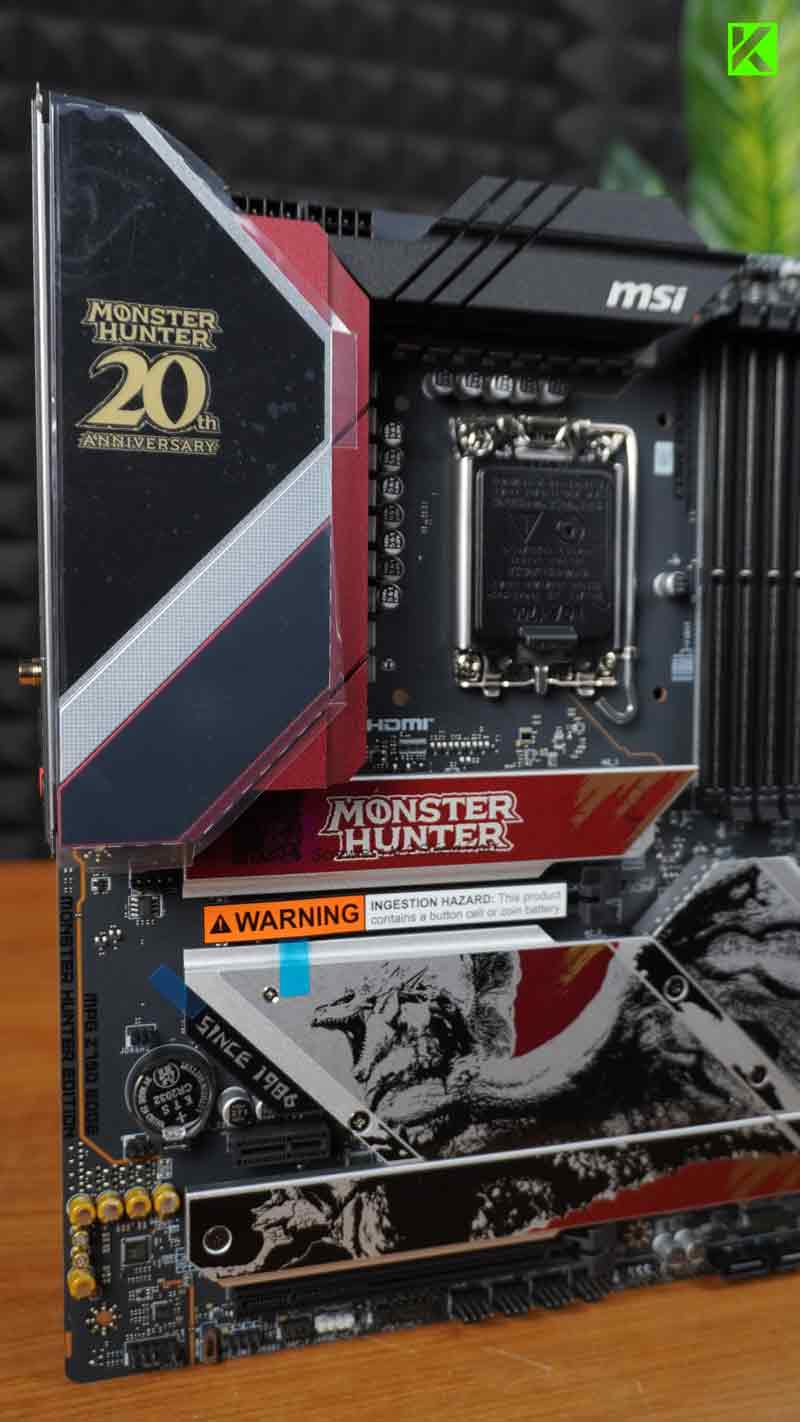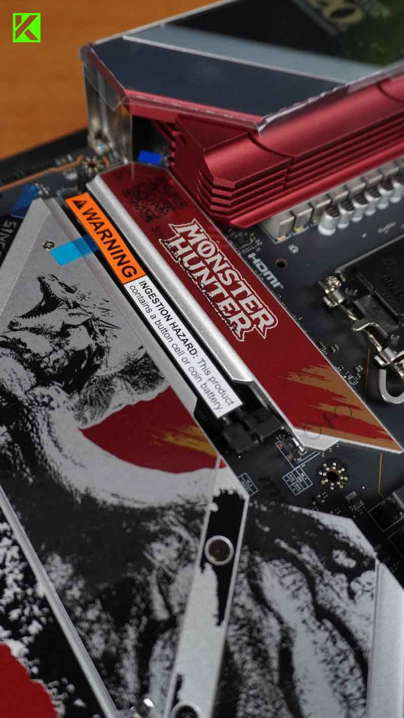 Dengan artwork yang menampilkan Rathalos secara detail, motherboard ini menghadirkan sentuhan visual yang sangat sesuai dengan tema Monster Hunter.