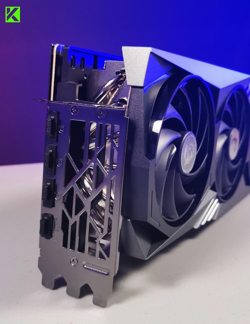 Mari kita telisik lebih dalam ke bagian belakang kipasnya. Terlihat ada pelat dasar yang terbuat dari tembaga, panas dari GPU dan modul memori ditangkap oleh pelat dasar tembaga dan kemudian dengan cepat ditransfer ke Pipa Inti.
