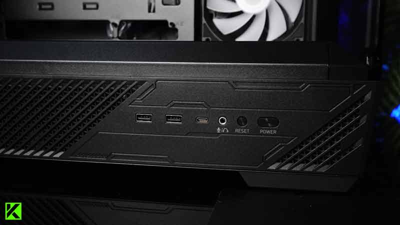 Untuk bagian depan, casing ini dilengkapi dengan port yang cukup modern. Ada dua USB 5Gbps (Type-A), satu USB 20Gbps (Type-C), serta audio jack untuk audio-out dan mic-in.
