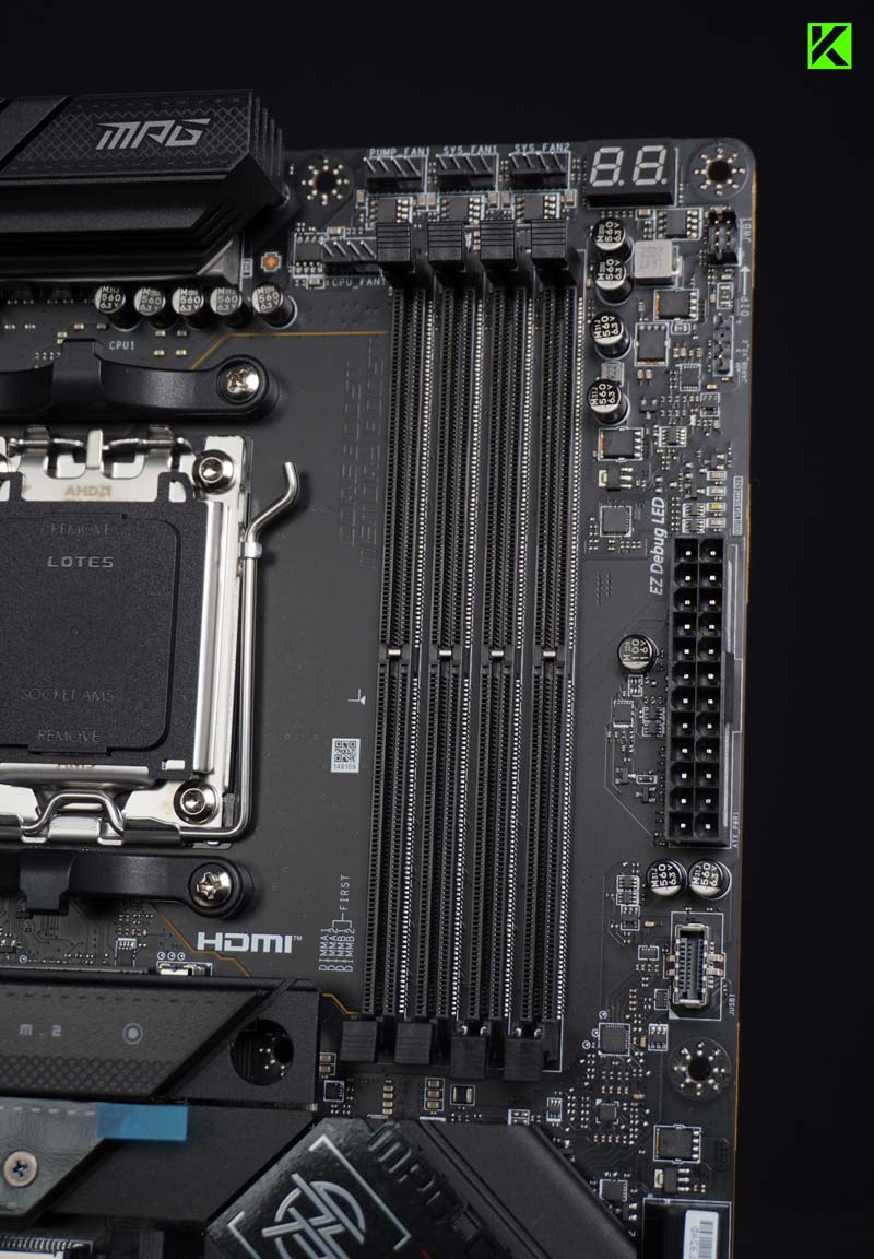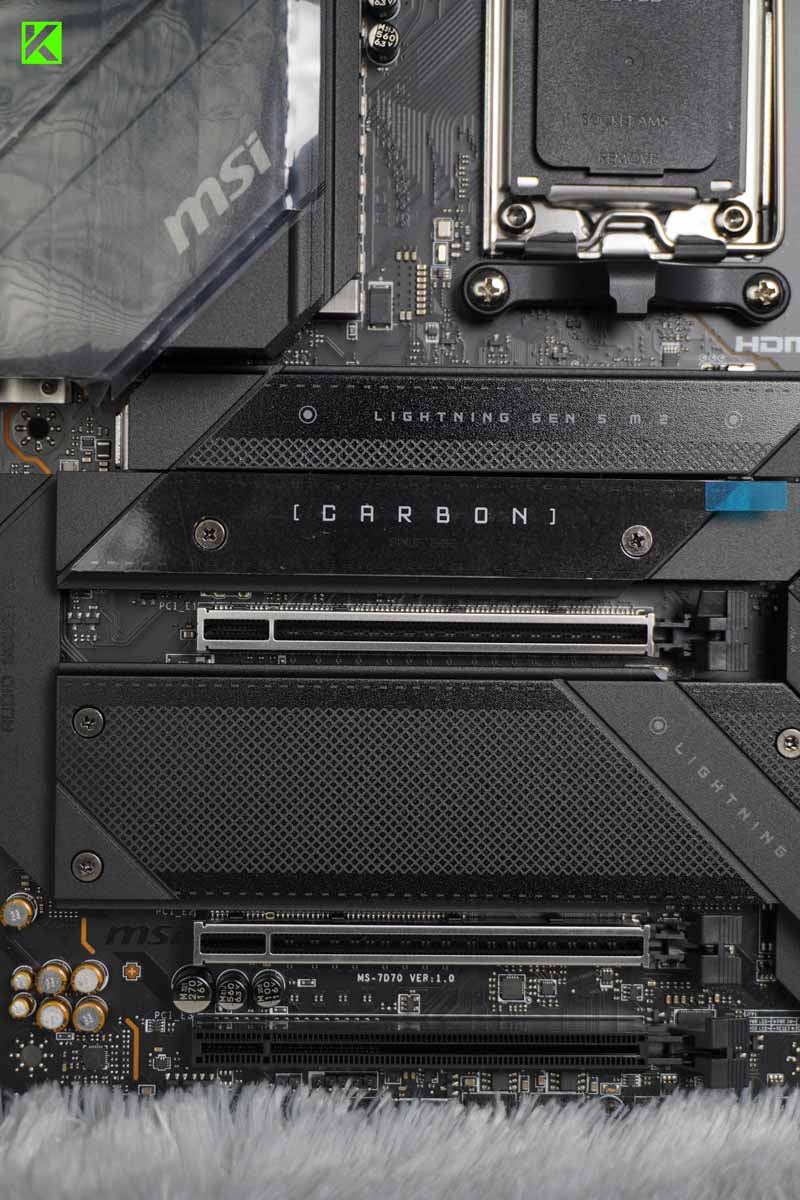 Motherboard MSI MPG series ini juga dilengkapi dengan slot PCIE SMT 5.0 yang canggih. Teknologi SMT (Surface Mount Technology) ini membantu meminimalisir gangguan dan noise listrik, memastikan sinyal PCI-E 5.0 yang stabil dan andal.