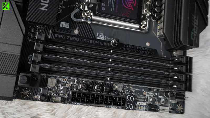 MSI MPG Z890 CARBON WIFI dilengkapi dengan empat slot DDR5 UDIMM yang mendukung kapasitas memori maksimum hingga 256GB.