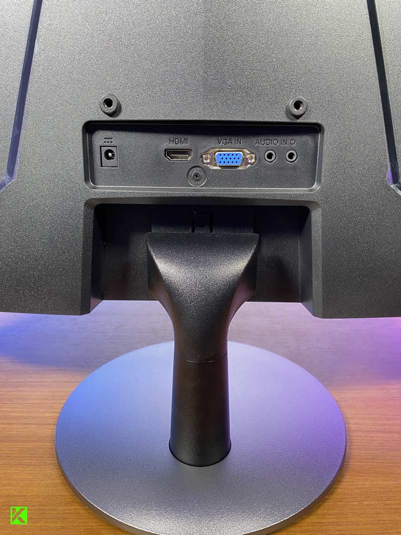 Mari kita lihat ada slot dan tombol apa saja pada monitor ini, setelah kami cek, ternyata ada beberapa slot dan tombol pendukung yang tersedia dibagian belakang monitor seperti: