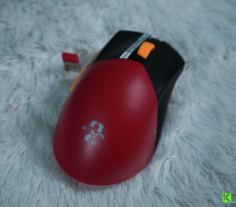 Yang pertama kali mencuri perhatian adalah desainnya yang terinspirasi oleh karakter EVA-02 dan Asuka. Dengan skema warna merah dan oranye yang ikonik dari Eva-02, mouse ini tampil dengan asimetris yang khas dari seri Gladius.