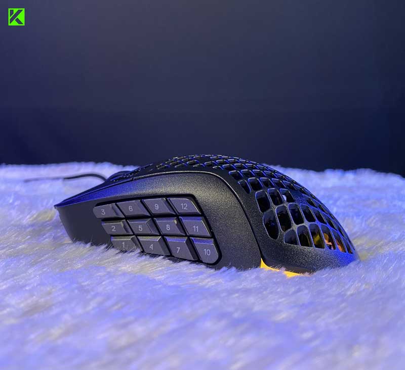 Lanjut ke aspek fiturnya. Mungkin kamu bertanya-tanya apa fungsi 12 tombol di sisi kiri mouse ini ya? Ternyata fungsi ke 12 tombol di sisi kiri ini tombol program yang dikhususkan gamer ketika memainkan beberapa game yang terkenal seperti World of Warcraft, League of Legends, Final Fantasy XIV, Dota 2 dan Lost Ark.